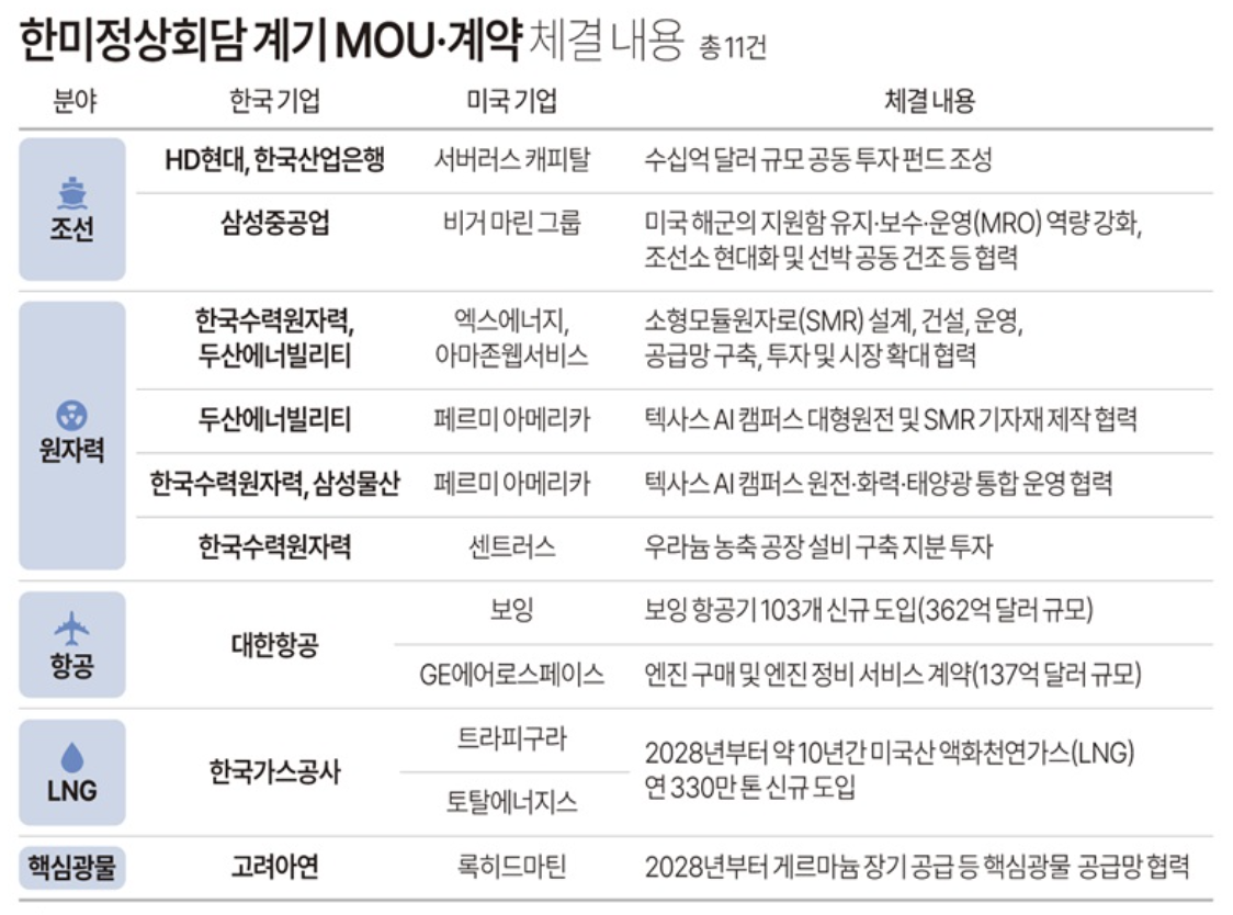 한미 정상회담을 계기로 한국과 미국이 ‘제조업 르네상스’의 새로운 길을 열었습니다. 조선, 원자력, 항공, LNG, 핵심광물 등 전략 산업 분야에서 11건의 계약과 MOU를 체결하며, 양국 협력이 더욱 강화되고 있습니다. 지금 이 흐름은 단순한 교류를 넘어 향후 글로벌 공급망 재편에도 큰 영향을 줄 수 있는 중요한 분수령이 될 것입니다.