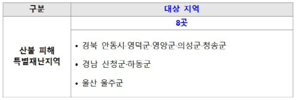 | 특별재난지역 편 | 재난피해지역 | 5만원 | 3만원 |